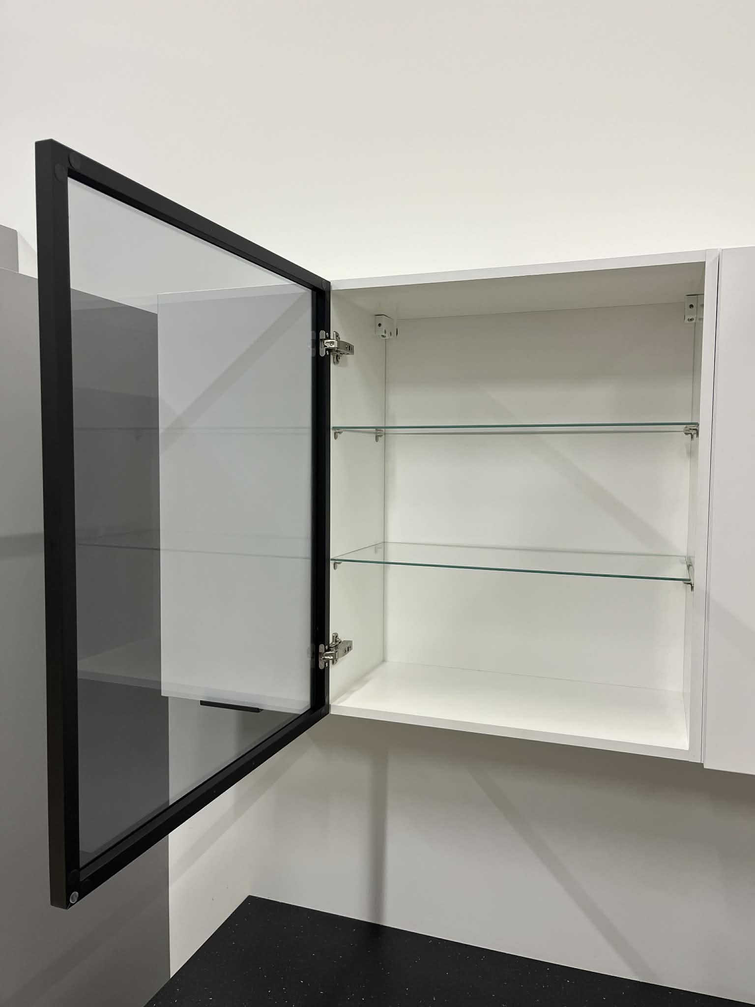 Фронтальные панели: стекло, полки: стекло.